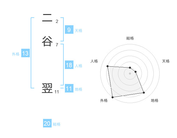 二谷 翌さんの総格は20画の1点!
