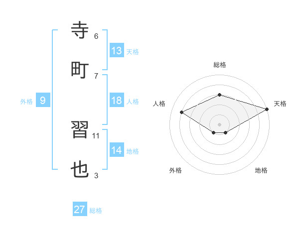 寺町 習也さんの天格は13画の5点!