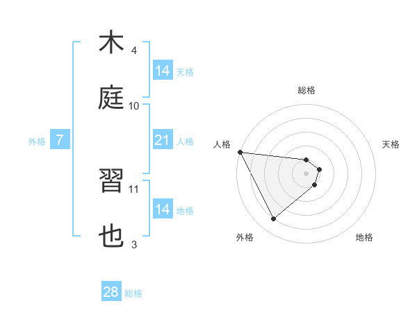 木庭 習也さんの人格は21画の5点!