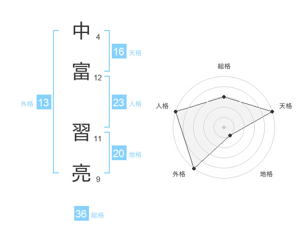 中富 習亮さんの外格は13画の5点!