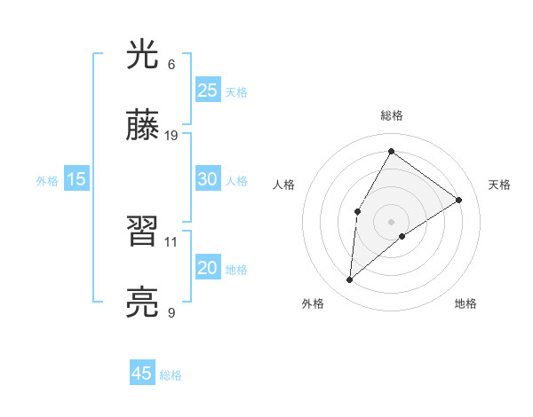 光藤 習亮さんの総格は45画の4点!