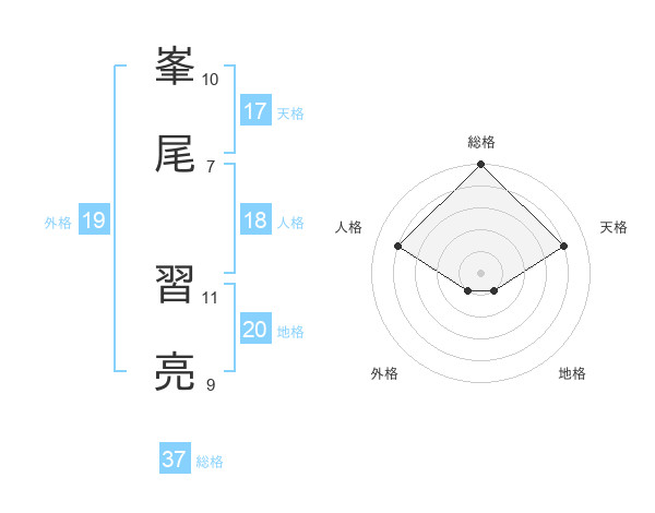 峯尾 習亮さんの総格は37画の5点!