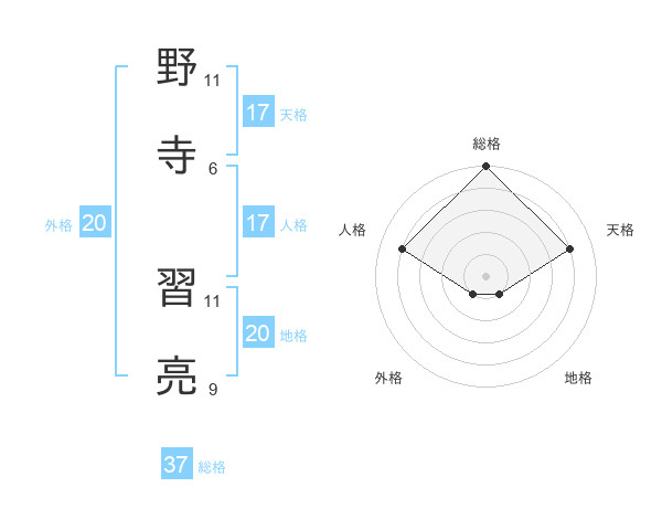 野寺 習亮さんの総格は37画の5点!