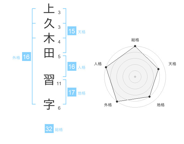 上久木田 習字さんの地格は17画の4点!