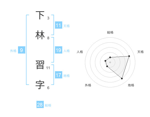 下林 習字さんの天格は11画の4点!