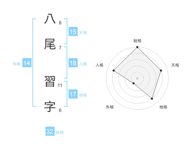 八尾 習字さんの天格は15画の4点!