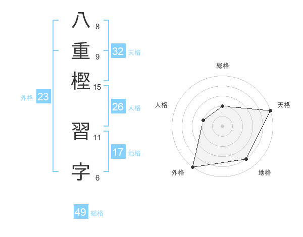 八重樫 習字さんを姓名の画数から五運を鑑定