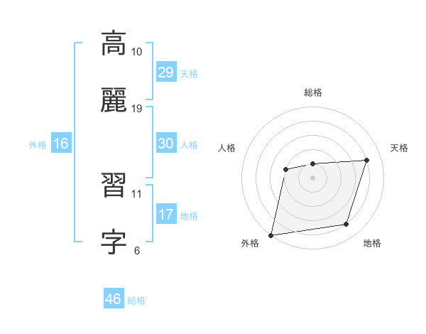 高麗 習字さんの総格は46画の1点!