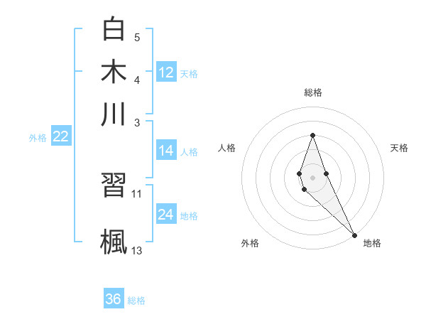 白木川 習楓さんの外格は22画の1点!