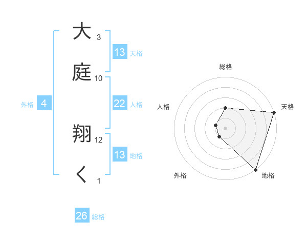 大庭 翔くさんを姓名の画数から五運を鑑定
