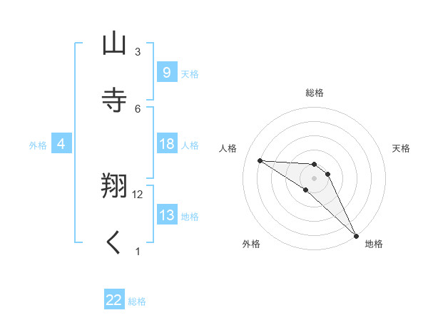 山寺 翔くさんを姓名の画数から五運を鑑定