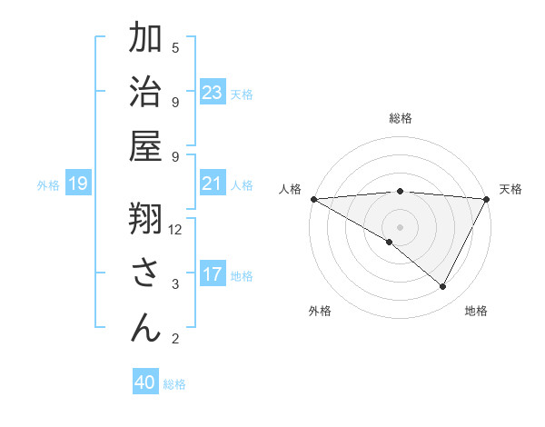 加治屋 翔さんさんを姓名の画数から五運を鑑定
