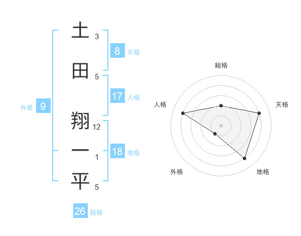 土田 翔一平さんを姓名の画数から五運を鑑定