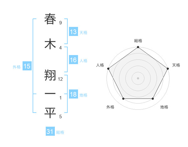 春木 翔一平さんの総格は31画の5点!