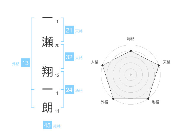 一瀬 翔一朗さんの総格は45画の4点!