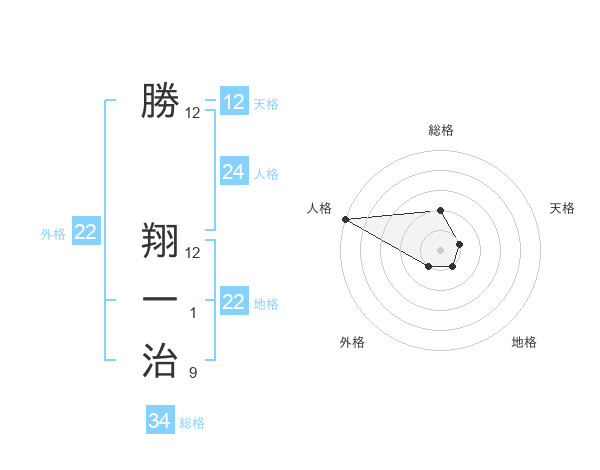 勝 翔一治さんを姓名の画数から五運を鑑定
