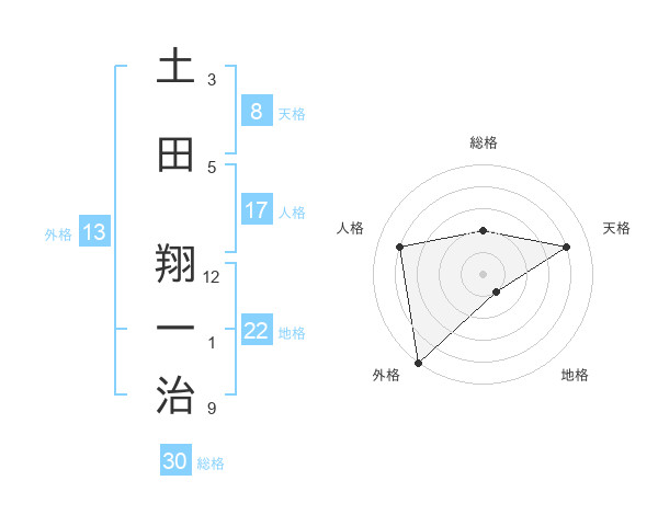 土田 翔一治さんを姓名の画数から五運を鑑定