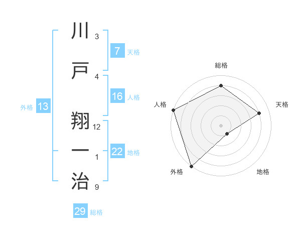 川戸 翔一治さんを姓名の画数から五運を鑑定