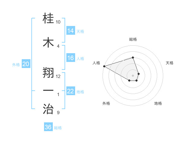 桂木 翔一治さんの地格は22画の1点!