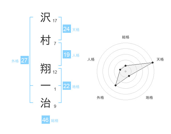 沢村 翔一治さんを姓名の画数から五運を鑑定