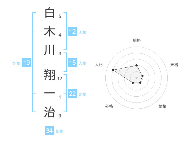 白木川 翔一治さんの総格は34画の2点!