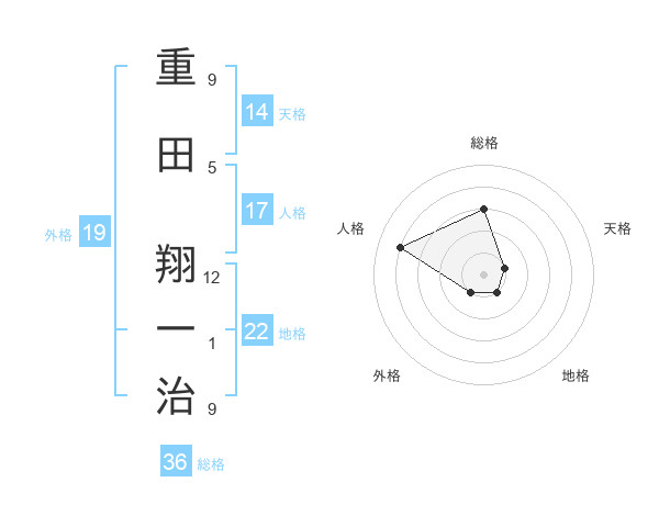 重田 翔一治さんの地格は22画の1点!