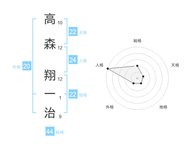 高森 翔一治さんの地格は22画の1点!