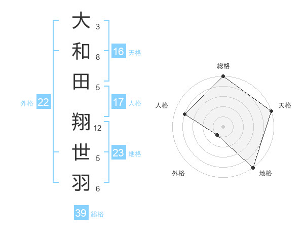 大和田 翔世羽さんを姓名の画数から五運を鑑定