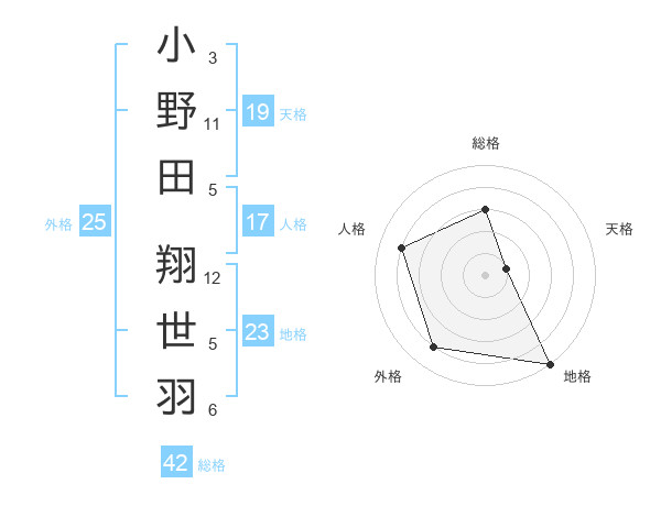 小野田 翔世羽さんの外格は25画の4点!