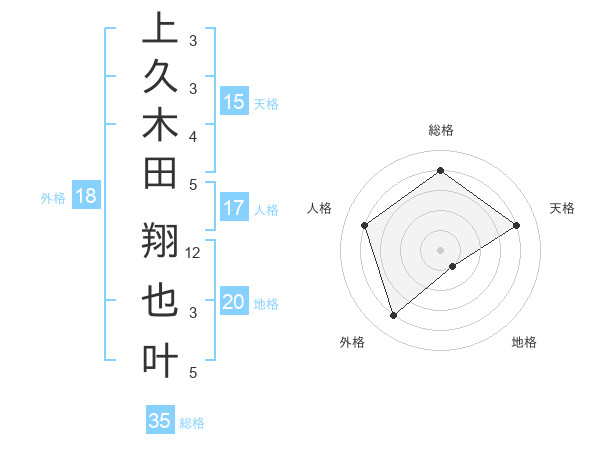 上久木田 翔也叶さんを姓名の画数から五運を鑑定