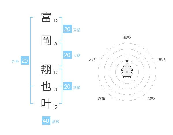 富岡 翔也叶さんを姓名の画数から五運を鑑定