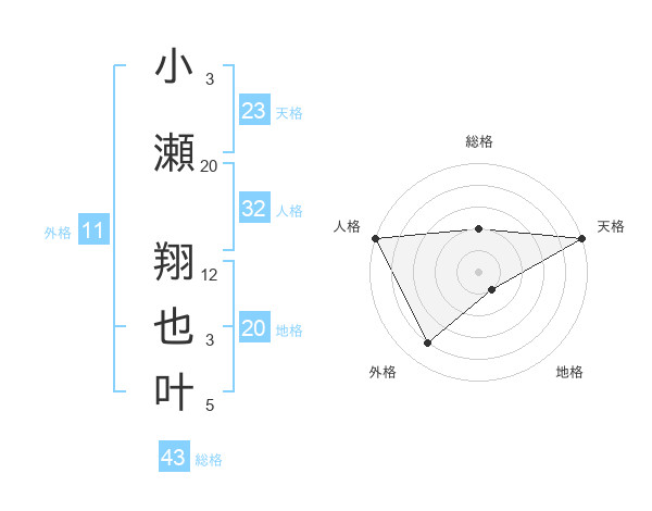 小瀬 翔也叶さんを姓名の画数から五運を鑑定