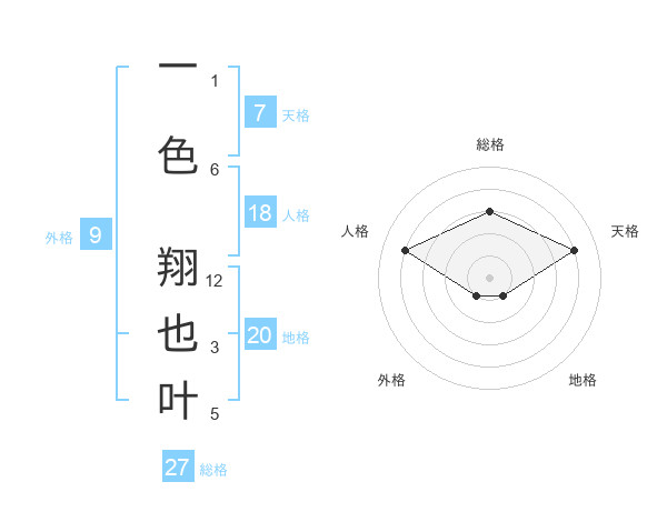 一色 翔也叶さんを姓名の画数から五運を鑑定
