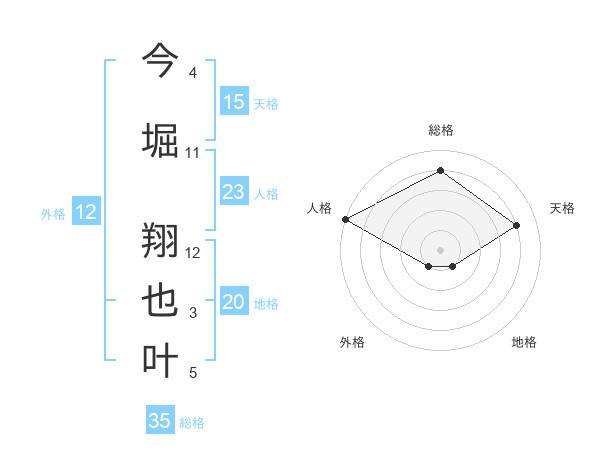 今堀 翔也叶さんを姓名の画数から五運を鑑定