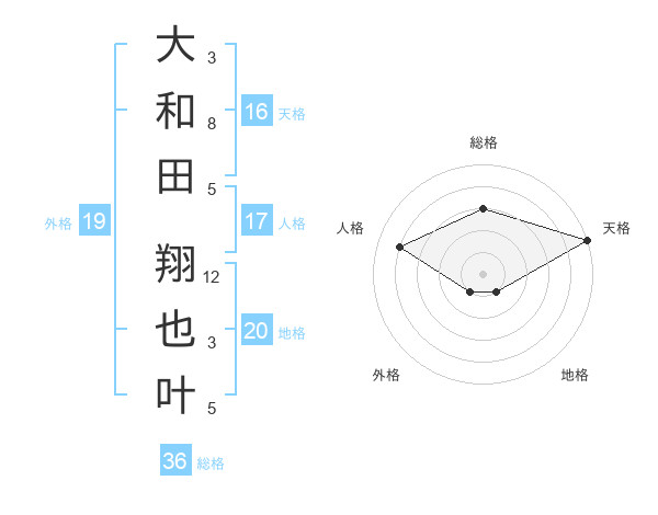 大和田 翔也叶さんを姓名の画数から五運を鑑定