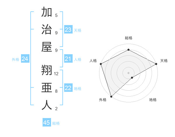 加治屋 翔亜人さんを姓名の画数から五運を鑑定