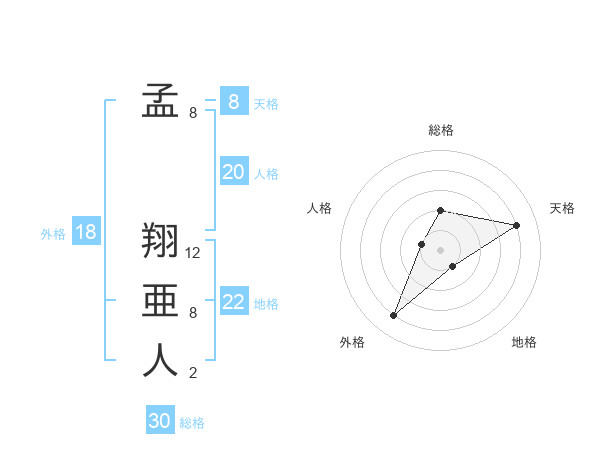 孟 翔亜人さんの総格は30画の2点!