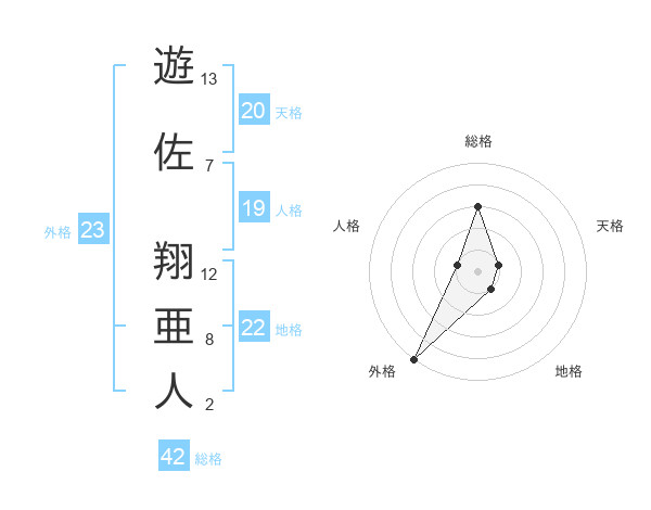 遊佐 翔亜人さんの総格は42画の3点!