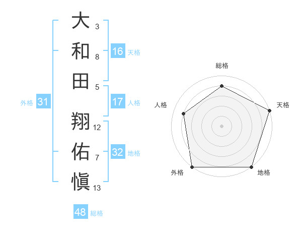 大和田 翔佑愼さんを姓名の画数から五運を鑑定