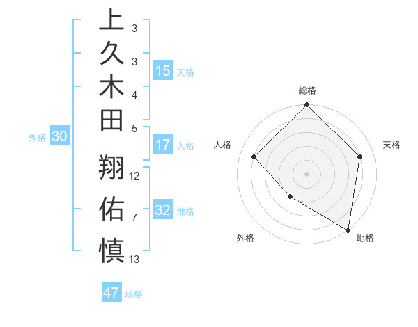 上久木田 翔佑慎さんの総格は47画の5点!
