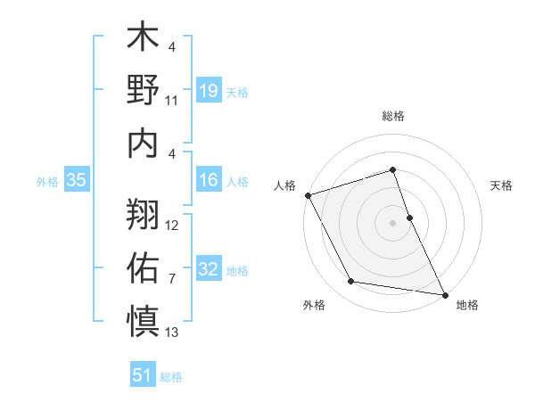 木野内 翔佑慎さんの総格は51画の3点