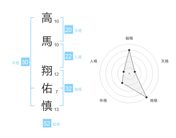 高馬 翔佑慎さんの総格は52画の4点!