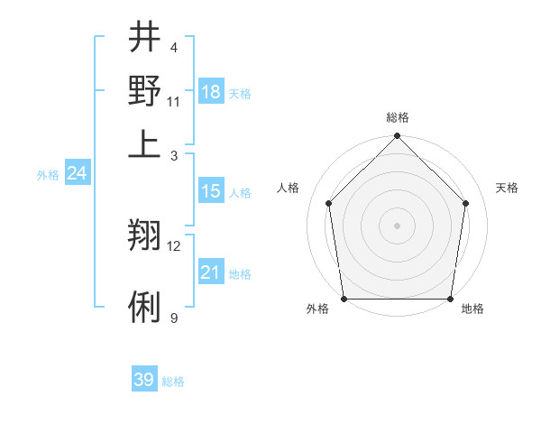 井野上 翔俐さんの総格は39画の5点