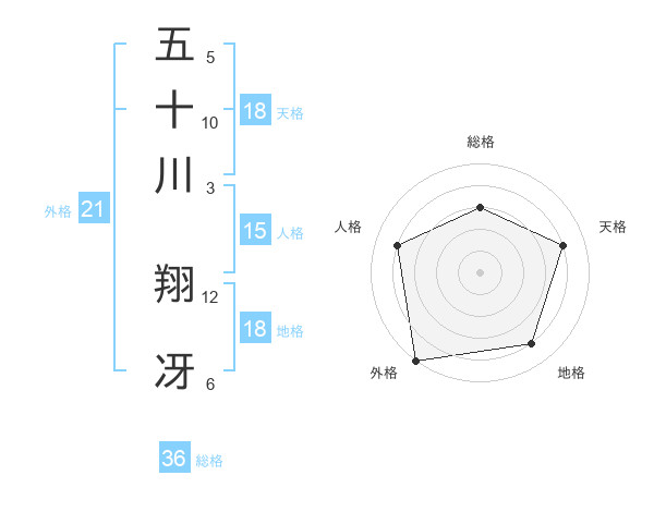 五十川 翔冴さんの天格は18画の4点!