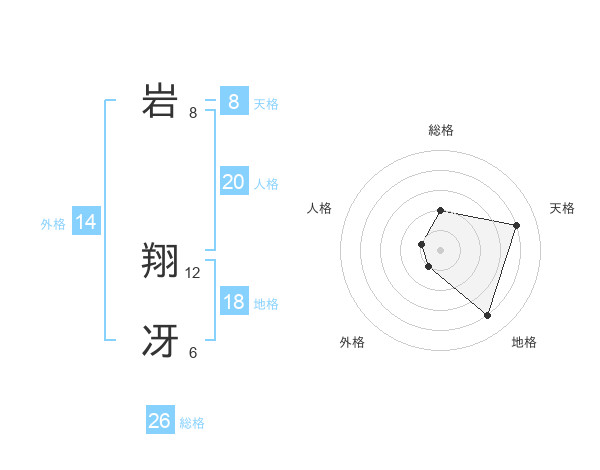 岩 翔冴さんの天格は8画の4点!
