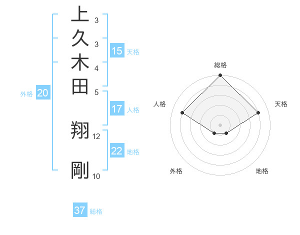 上久木田 翔剛さんを姓名の画数から五運を鑑定