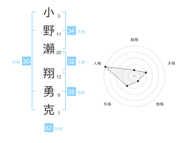 小野瀬 翔勇克さんを姓名の画数から五運を鑑定