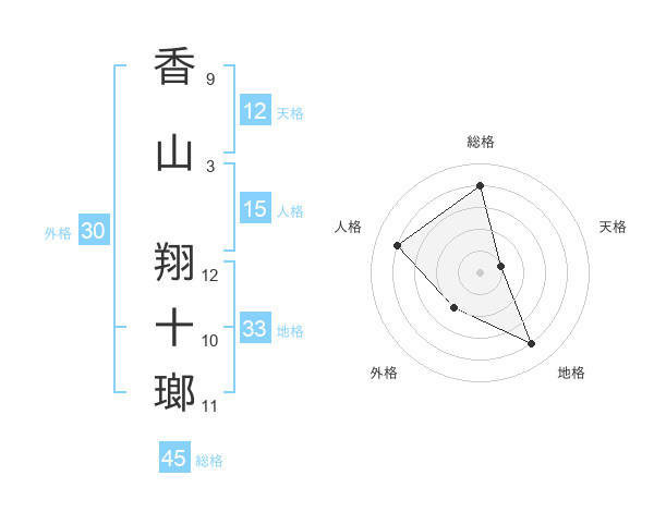 香山 翔十瑯さんの総格は45画の4点!