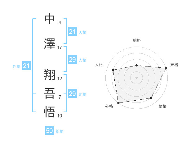 中澤 翔吾悟さんの天格は21画の5点!