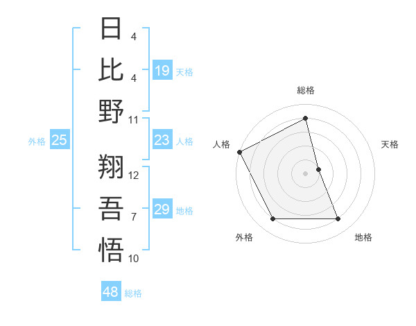 日比野 翔吾悟さんを姓名の画数から五運を鑑定